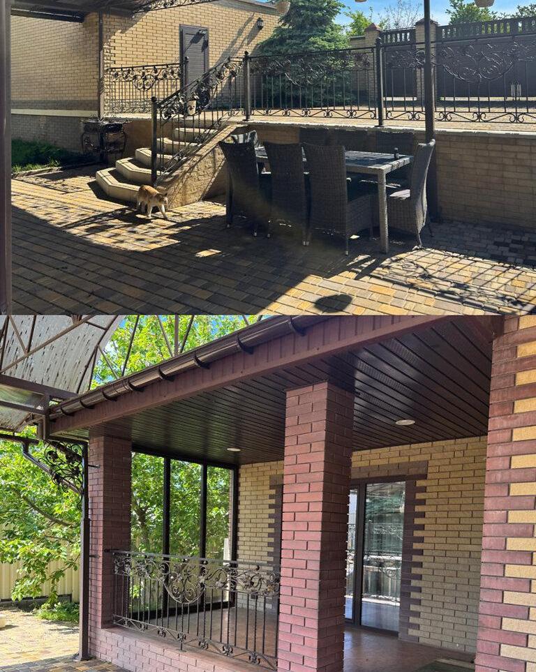 У будинку: Простора кухня з виходом на затишну терасу, 5 кімнат для родини та гостей, 2 санвузли, Гардеробна кімната, підвал, господарчий блок.