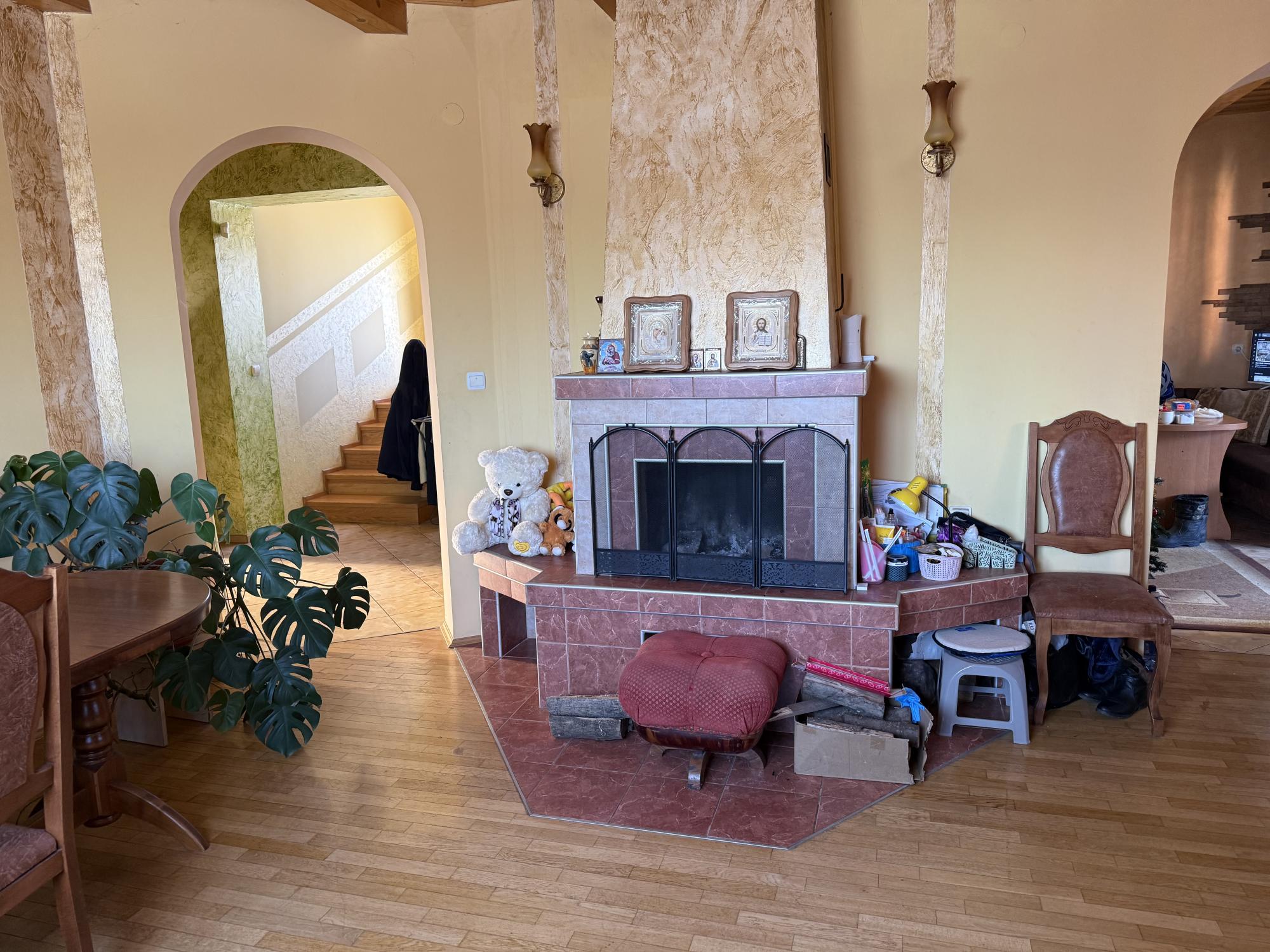 У будинку 5 кімнат, 2 тераси, балкон, 2 санвузли. Опалення - двохконтурний газовий котел плюс камін.