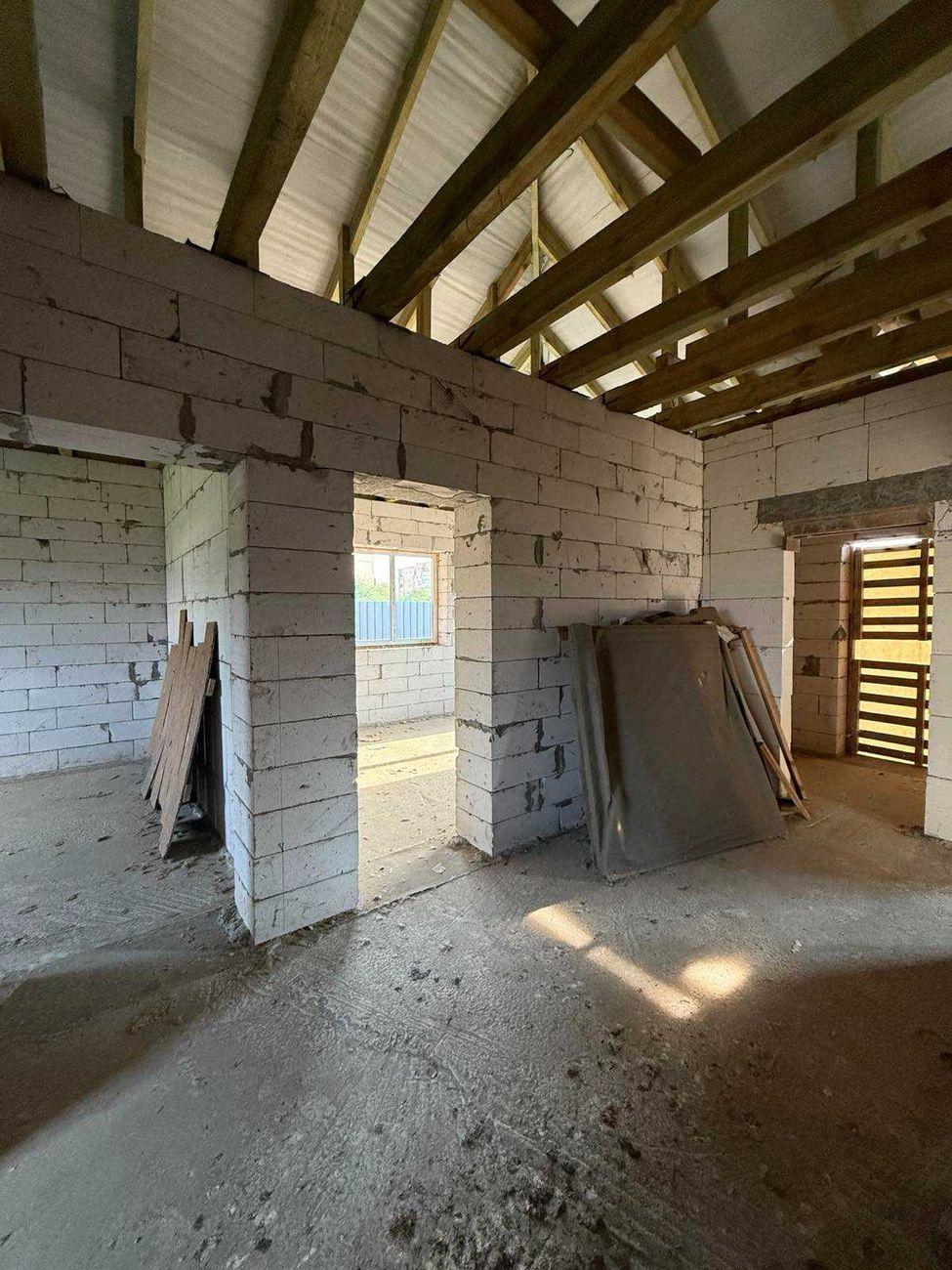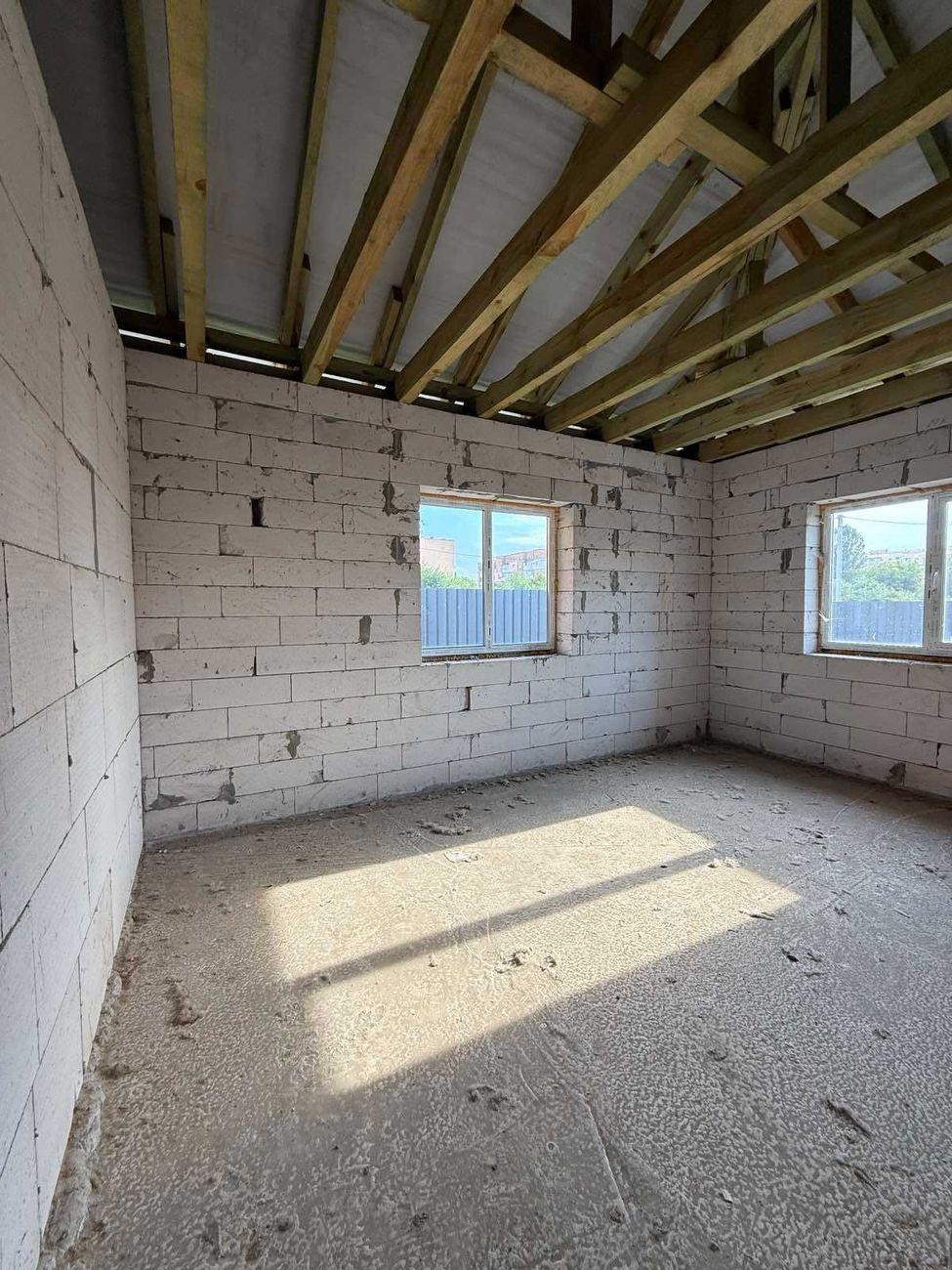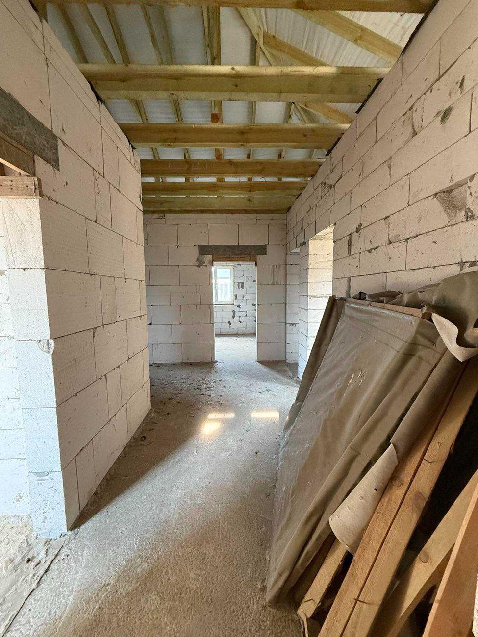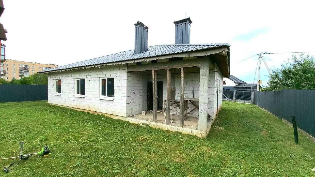 * Общая площадь 130 м2, 3 отдельные комнаты и просторная гостиная 19 м2, кухня – 14 м2. Гараж – 23 м2 с автоматическими подъемными воротами. * Дом построен из газоблока, залит армопояс, фундамент сделан из арматуры и залит бетоном на глубину 1 м 30 см и залита бетонная плита в доме под теплый пол на такой же глубине. В наличии есть дерево для подшивки крыши и дорогая входная дверь. * Коммуникации полностью заведены со всеми возможными договорами и проектами: - централизованное водоснабжение со счетчиком, заведено в дом и выведено во дворе; - канализация переливная, 2 яма (2 больших бетонных кольца и 1 маленькое); – Газ заведен в дом к котлу и на кухню. Котел фирмы Bosch уже установлен. Вывод трубы под твердотопливное отопление. * Выведены все трубы и система вентиляции. * Есть капитальный фундамент под сауну с подвальным помещением и выведенной водой. * Есть строительный паспорт и эскиз намерений застройки. Начало строительства зарегистрировано уведомлением о начале выполнения строительных работ. * Приватизированный земельный участок 10 соток под строительство. * По всему периметру установлен качественный европаркан глубиной 1,5 м, залит бетоном. * Автоматические въездные ворота. Подъезд асфальтирован почти к дому, перед самым домом – сыпь щебня.