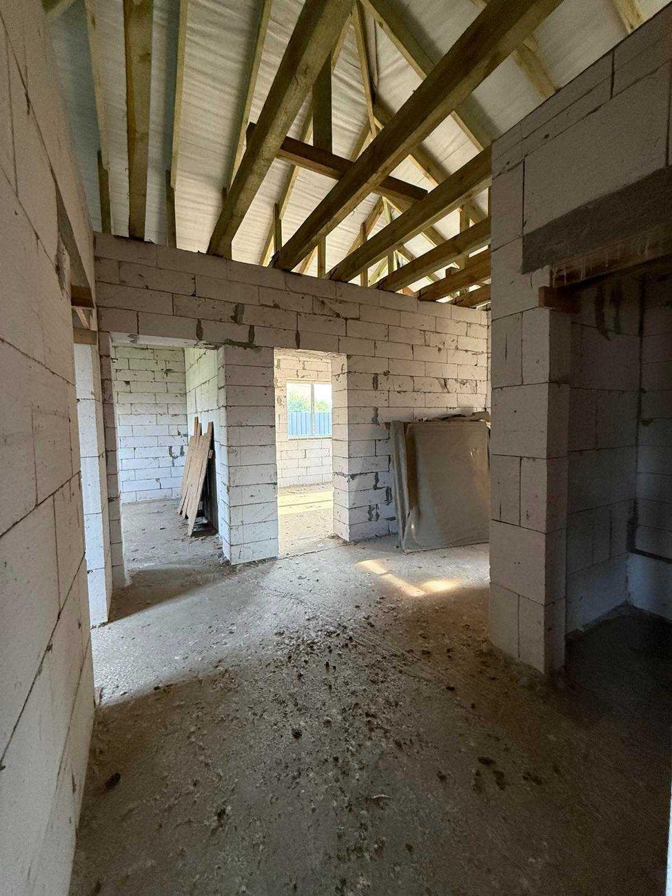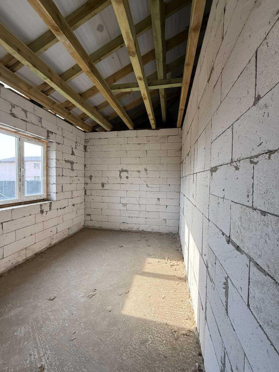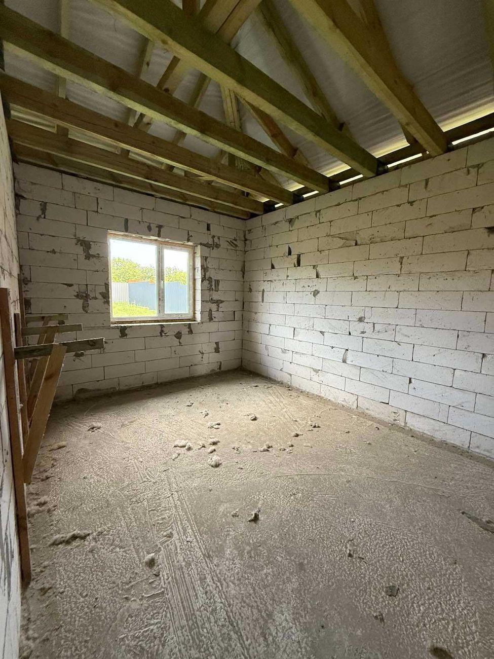* Общая площадь 130 м2, 3 отдельные комнаты и просторная гостиная 19 м2, кухня – 14 м2. Гараж – 23 м2 с автоматическими подъемными воротами. * Дом построен из газоблока, залит армопояс, фундамент сделан из арматуры и залит бетоном на глубину 1 м 30 см и залита бетонная плита в доме под теплый пол на такой же глубине. В наличии есть дерево для подшивки крыши и дорогая входная дверь. * Коммуникации полностью заведены со всеми возможными договорами и проектами: - централизованное водоснабжение со счетчиком, заведено в дом и выведено во дворе; - канализация переливная, 2 яма (2 больших бетонных кольца и 1 маленькое); – Газ заведен в дом к котлу и на кухню. Котел фирмы Bosch уже установлен. Вывод трубы под твердотопливное отопление. * Выведены все трубы и система вентиляции. * Есть капитальный фундамент под сауну с подвальным помещением и выведенной водой. * Есть строительный паспорт и эскиз намерений застройки. Начало строительства зарегистрировано уведомлением о начале выполнения строительных работ. * Приватизированный земельный участок 10 соток под строительство. * По всему периметру установлен качественный европаркан глубиной 1,5 м, залит бетоном. * Автоматические въездные ворота. Подъезд асфальтирован почти к дому, перед самым домом – сыпь щебня.