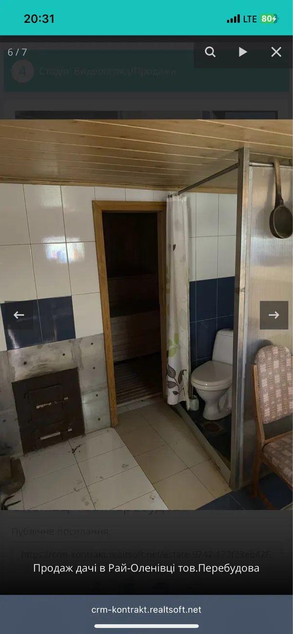Продється дачний будинок в елітному місці Рай Оленівка у садовому товаристві "Перебудова", всього в 10 км від міста. Площа будинку — 40 м², два поверхи, дві кімнати і невелика кухня. Земельна ділянка — 12 соток, приватизована. Будинок цегляний, з шиферною покрівлею, в житловому стані, мебльований. На ділянці є гараж, альтанка, колодязь, лазня на дровах з бойлером, душем і туалетом, а також окремий туалет на вулиці. Комунікації: септик, свердловина, електрика, асфальтована дорога. Є швидкістний Інтернет - оптоволокно. Поряд знаходяться озеро і ліс, що створює чудові умови для відпочинку