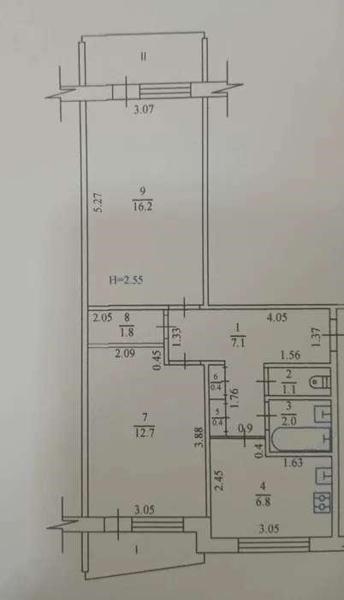 Поверх – 1/9, заг. площа – 65 м²., житлова – 45 м²., кухня – 7 м²., роздільні кімнати, роздільний санвузол.