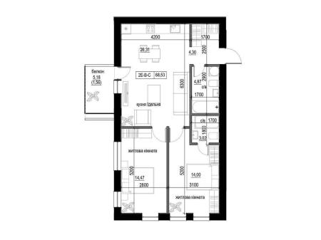 Продається двокімнатна квартира в новобудові, площею 68.53 м², без внутрішніх робіт.