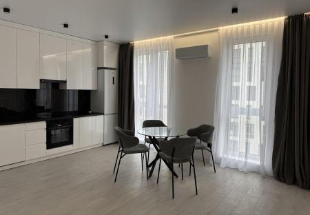 Новий дизайнерський ремонт. Кухня-вітальня, 2 спальні, 2 санвузли, балкон, коридор. Продається з усією технікою.