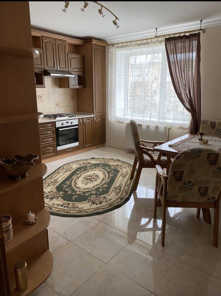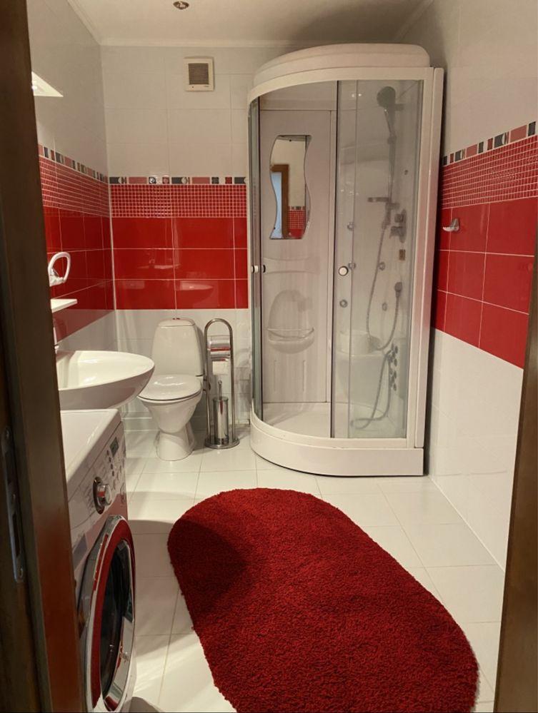 Одна душева кімната, окремо ванна кімната, гардеробна. Велика простора кухня з посудомийною машиною та кухонною технікою. Три кімнати.