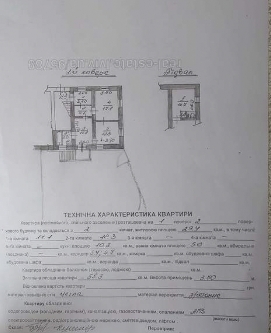 3 кімн. · 1/2 пов. · 55/30/10 м²