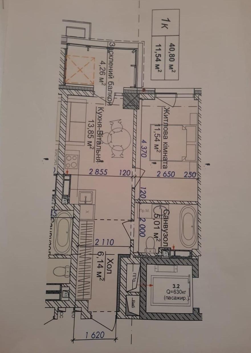 - Площа загальна, м²: 41