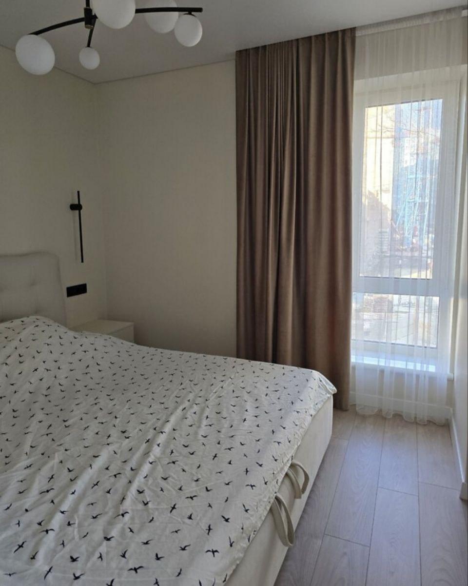 Планування: простора кухня-студія, світла спальня, великий балкон, сучасний ремонт.