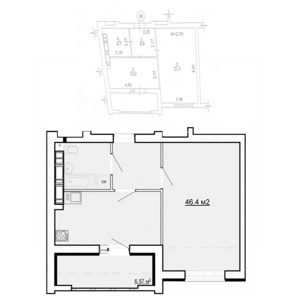 - Площа загальна, м²: 46.40
