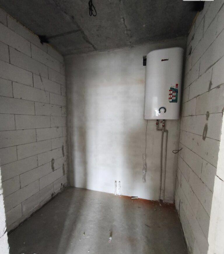 Всередені квартири виконано такі роботи: розведена електрика та сантехніка, стіни поштукатурені, чистова стяжка, встановлено електрокотел із батареями та електробойлер.