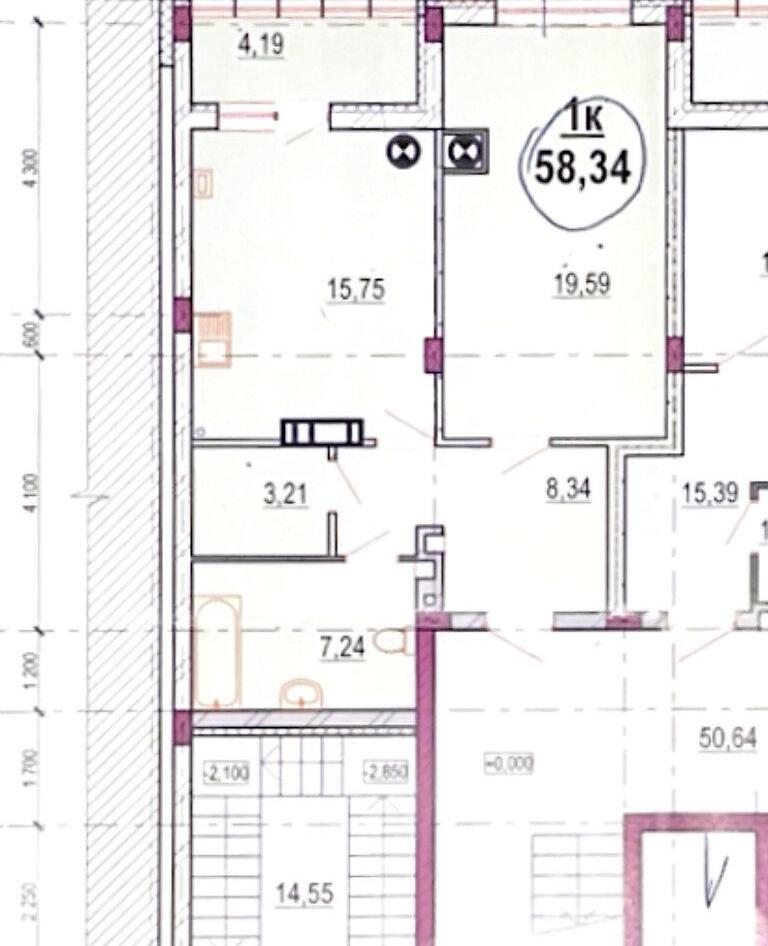 1 кімн. · 1/8 пов. · 58.34/19.59/15.75 м²