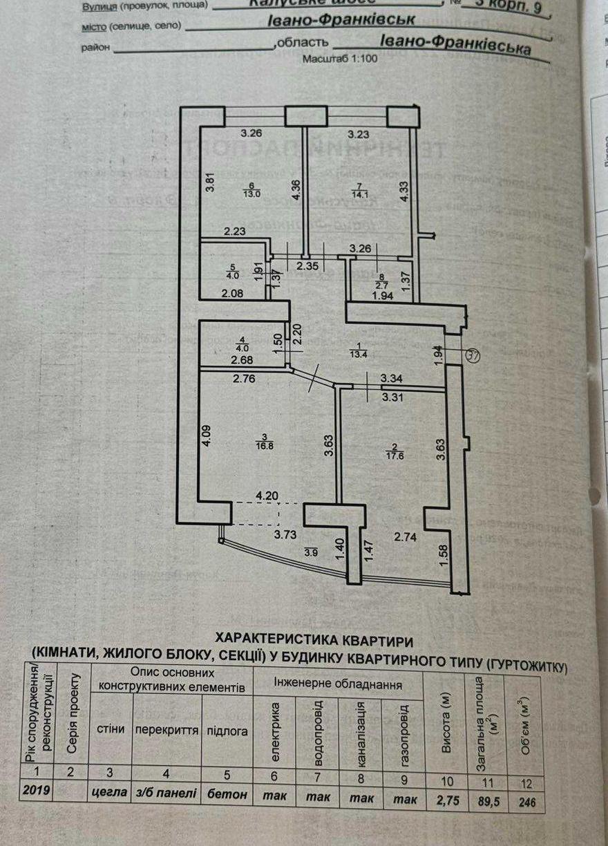 - Площа загальна, м²: 89.50