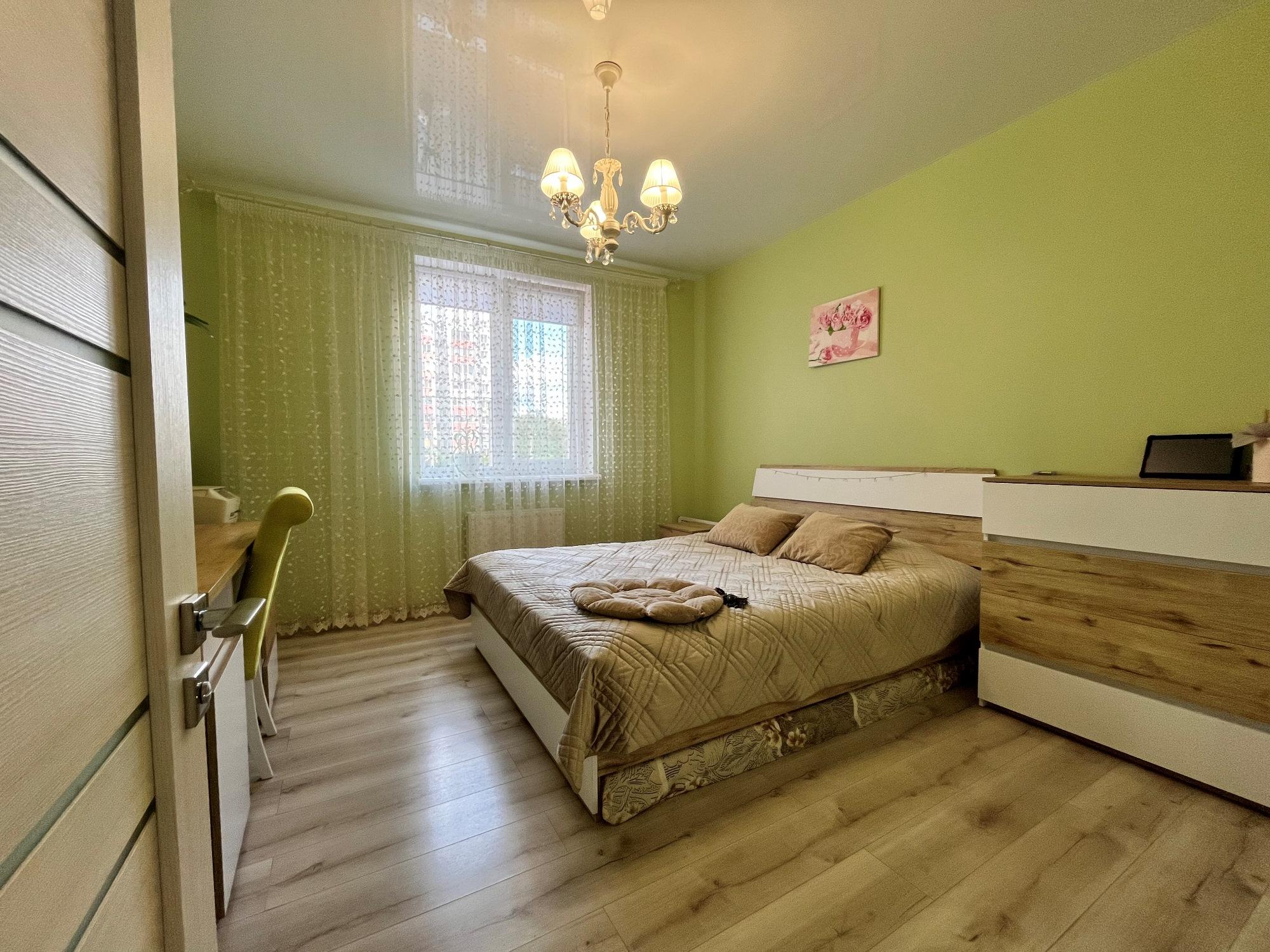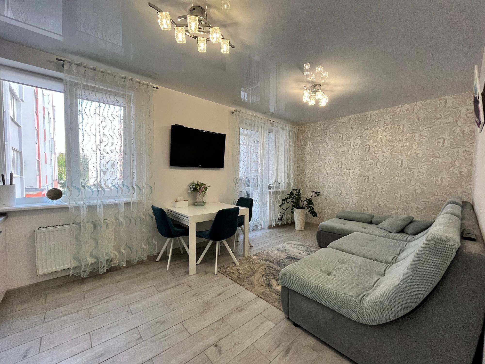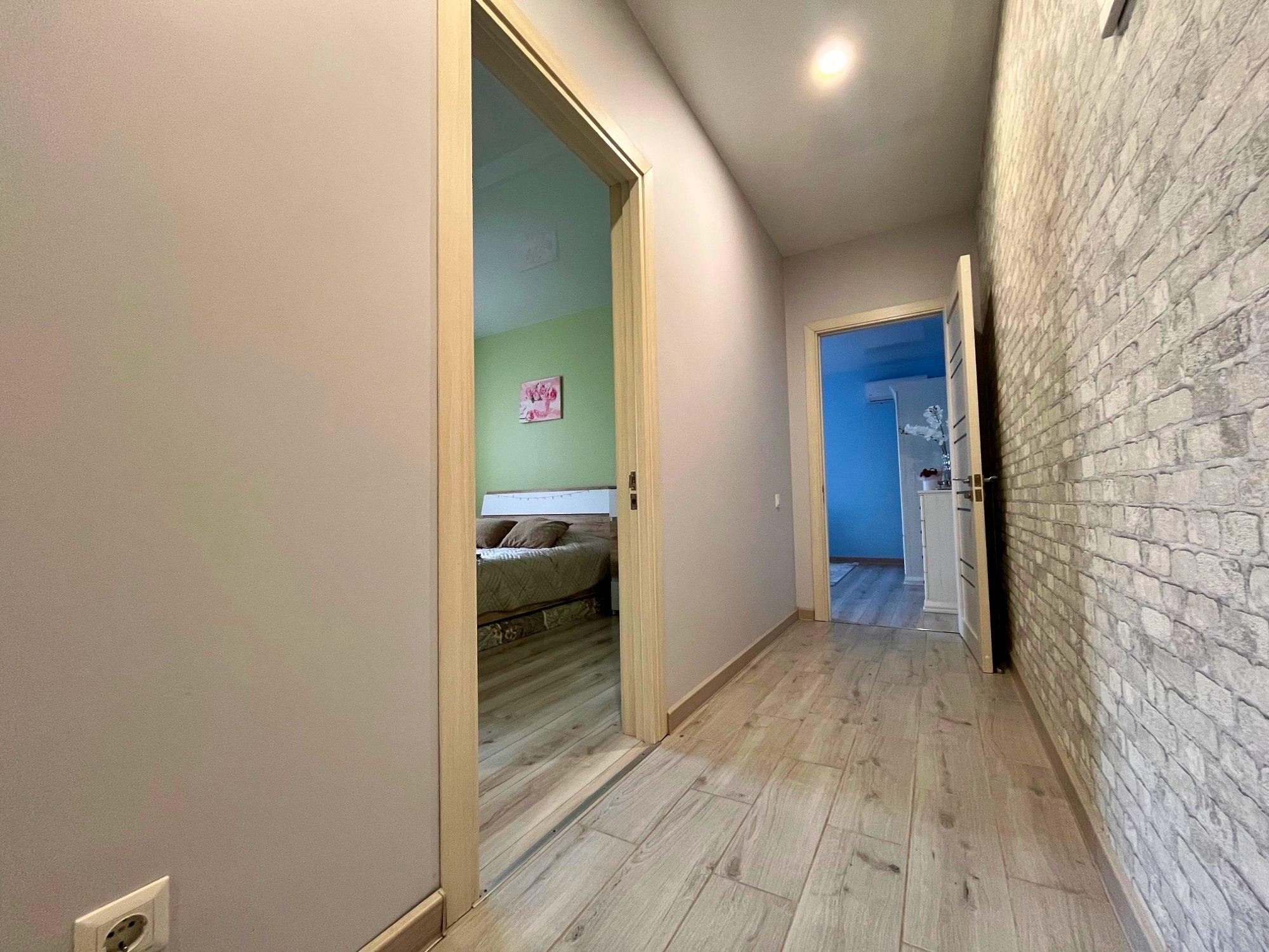 Формат квартири: кухня-студія, дві спальні, великий санвузол, передпокій, балкон. Ще є впорядковані місця зберігання у тамбурі.