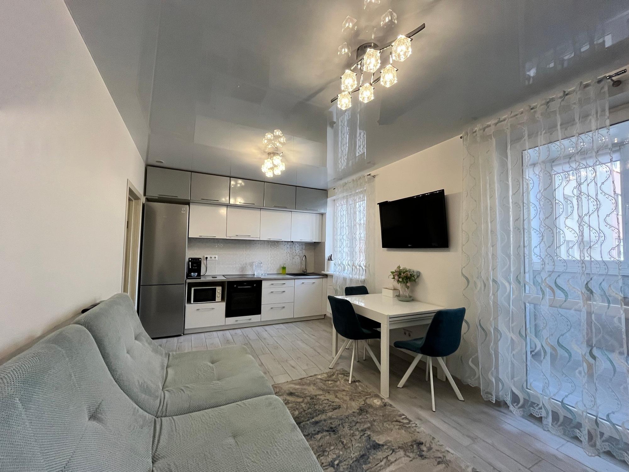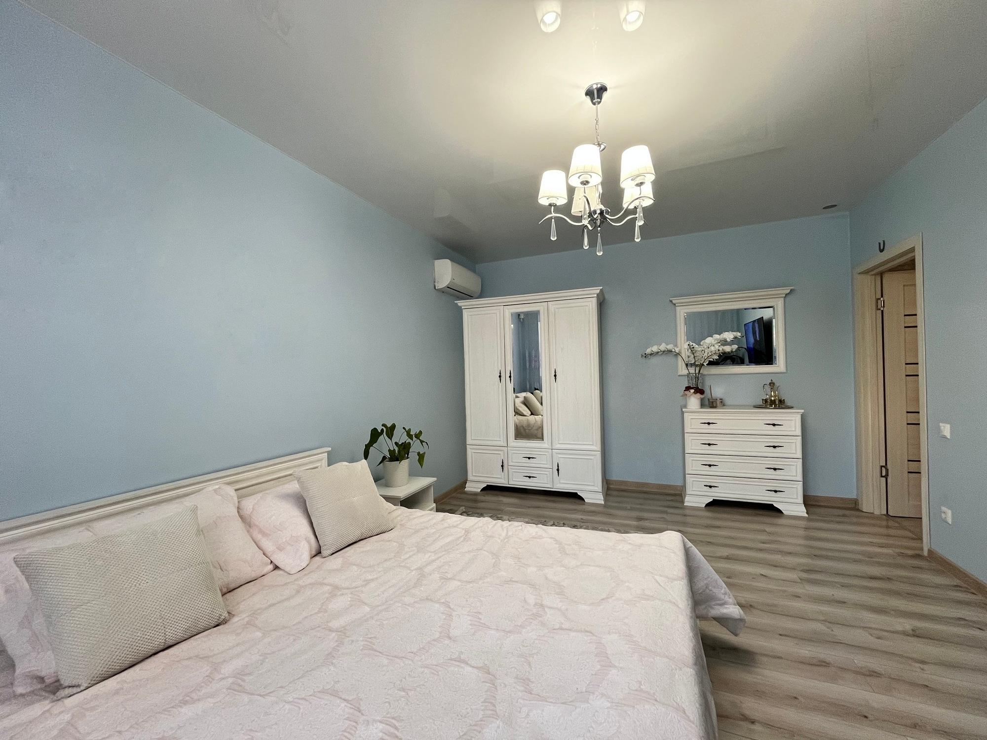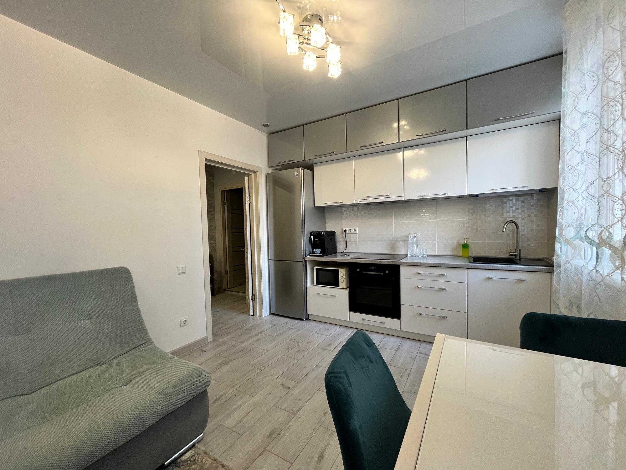 Формат квартири: кухня-студія, дві спальні, великий санвузол, передпокій, балкон. Ще є впорядковані місця зберігання у тамбурі.