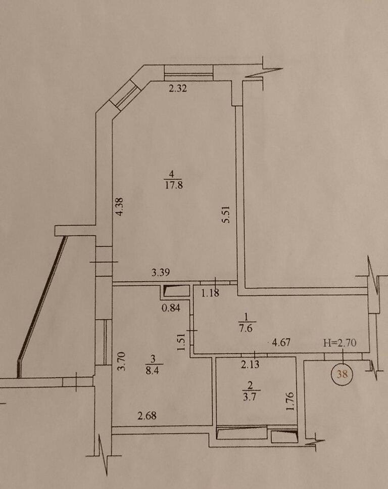 - Площа загальна, м²: 38