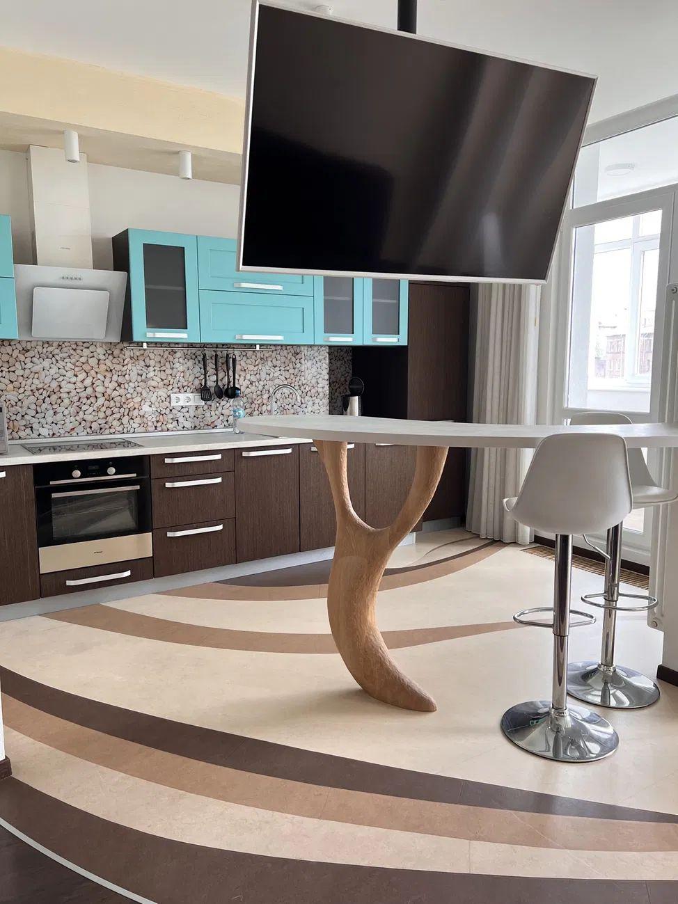Виконано якісний ремонт у сучасному стилі з використанням добротних матеріалів. Кожен квадратний метр квартири максимально функціональний та зручний для життя.