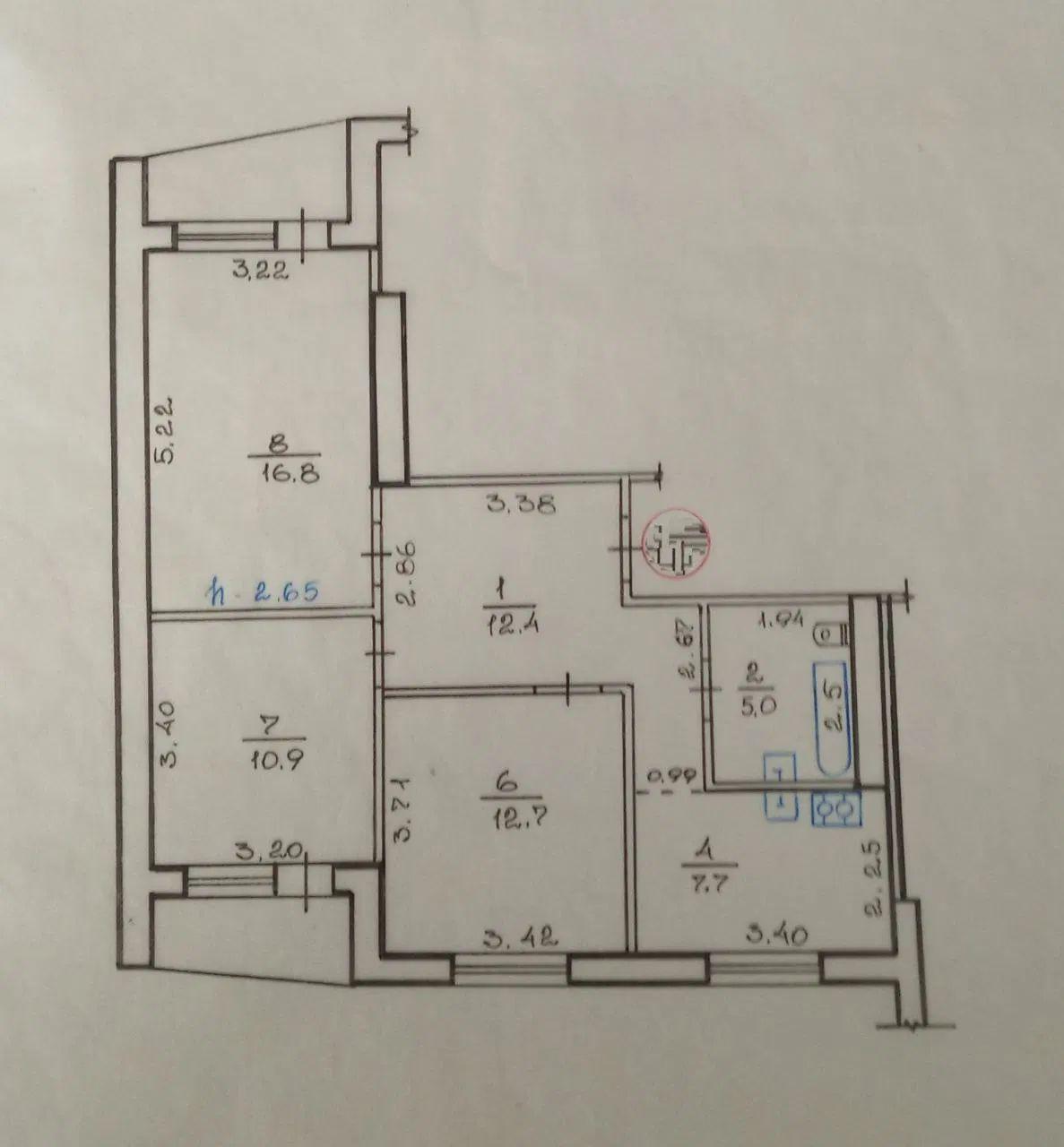 - Площа кухні, м²: 8