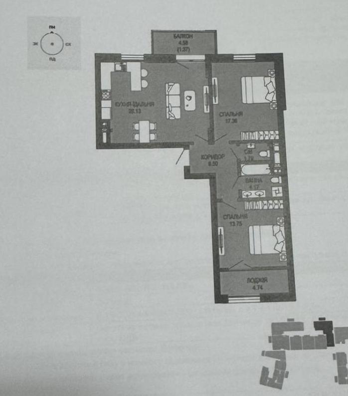 - Площа загальна, м²: 77.81