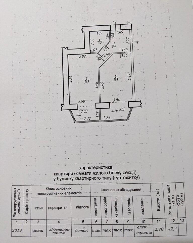 - Площа загальна, м²: 42.40
