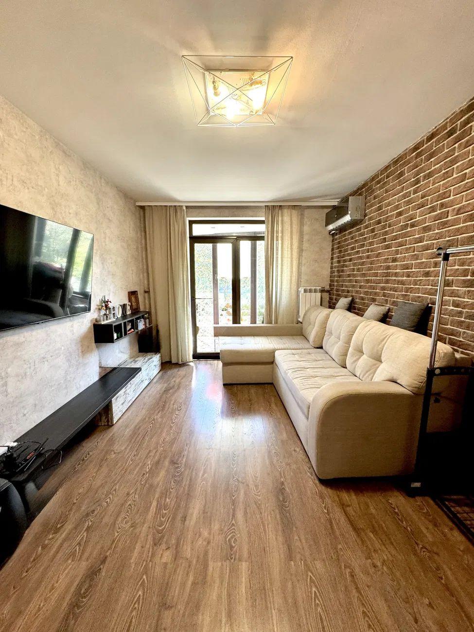 Квартира з сучасним якісним ремонтом та великими панорамними вікнами на балконі, які наповнюють простір світлом та створюють відчуття простору.