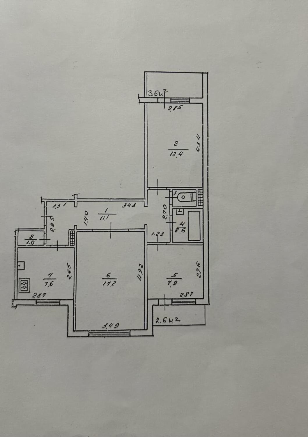 3 кімн. · 1/9 пов. · 63.60/37.50/7.60 м²