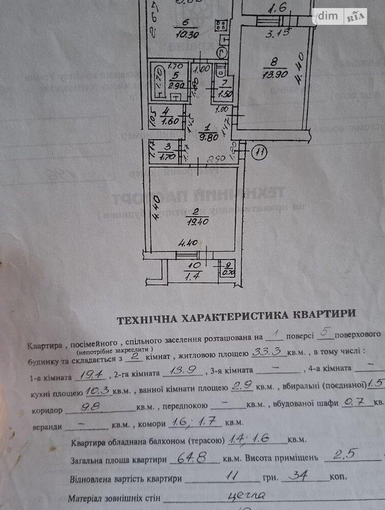 2 кімн. · 1/5 пов. · 65 м²