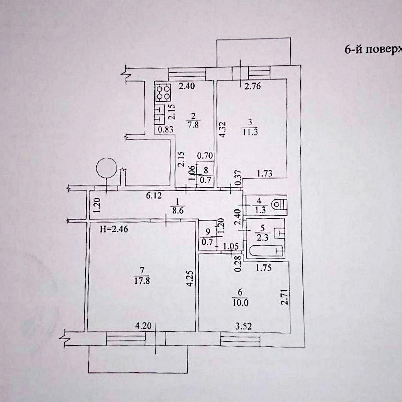 3 кімн. · 6/9 пов. · 64.30/39.10/7.80 м²
