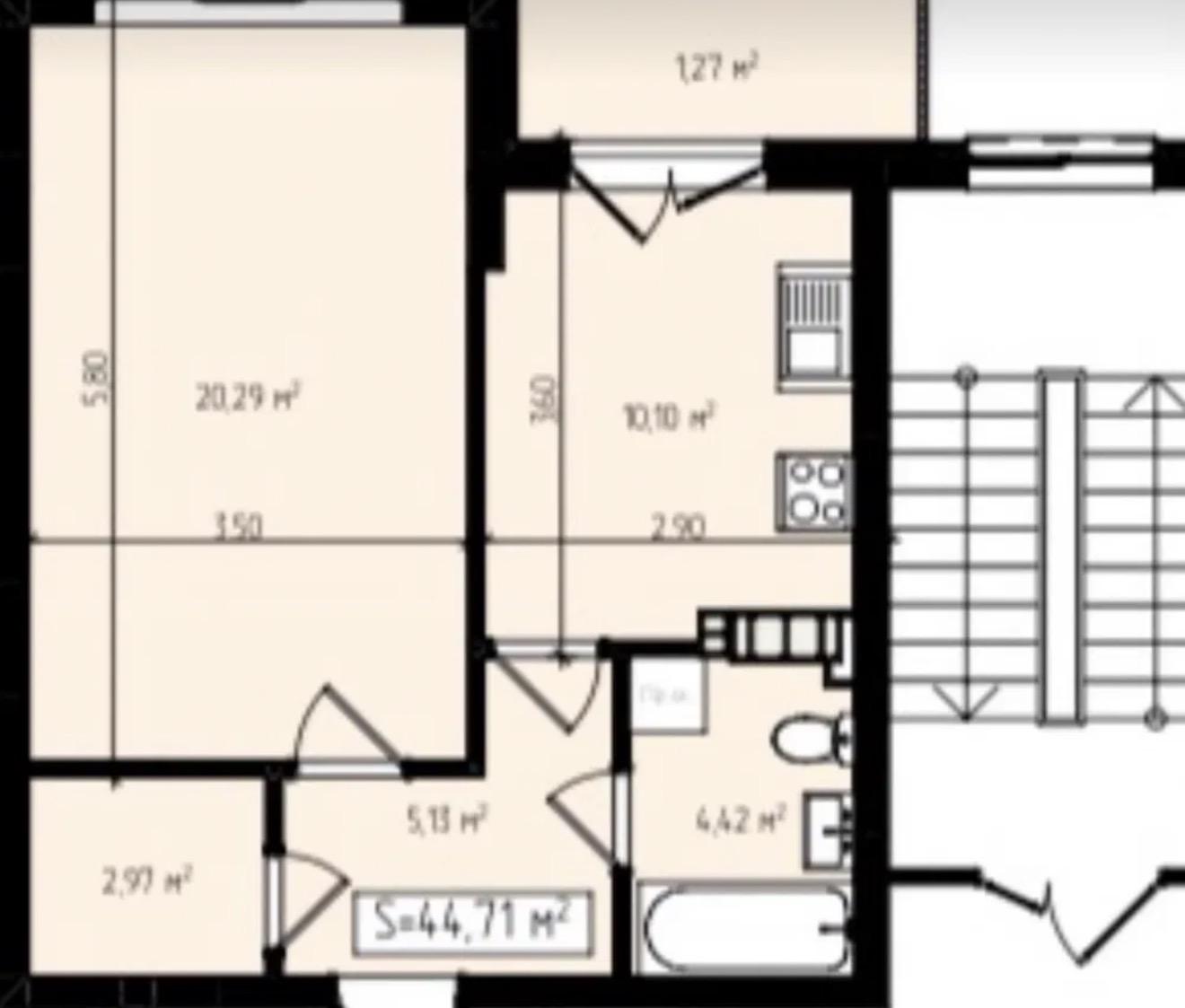 - Площа загальна, м²: 45