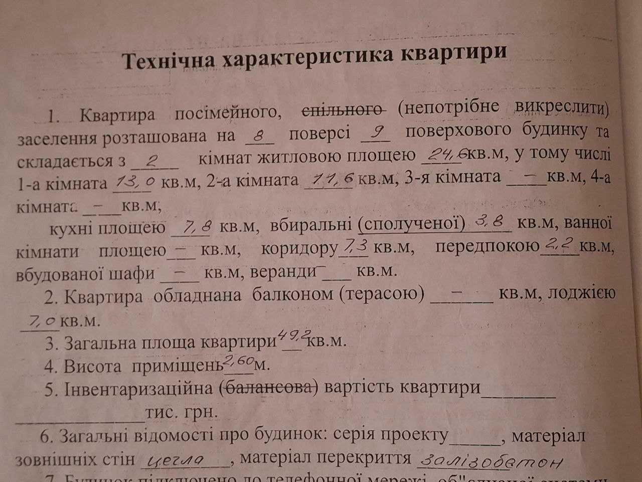 Квартира розташована на 8-му поверсі 9-поверхового будинку, кухня — 7,8 м².