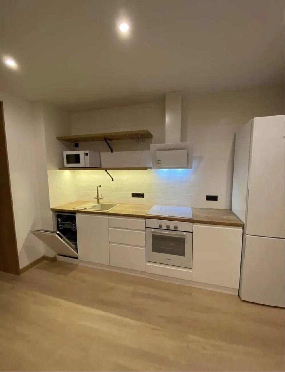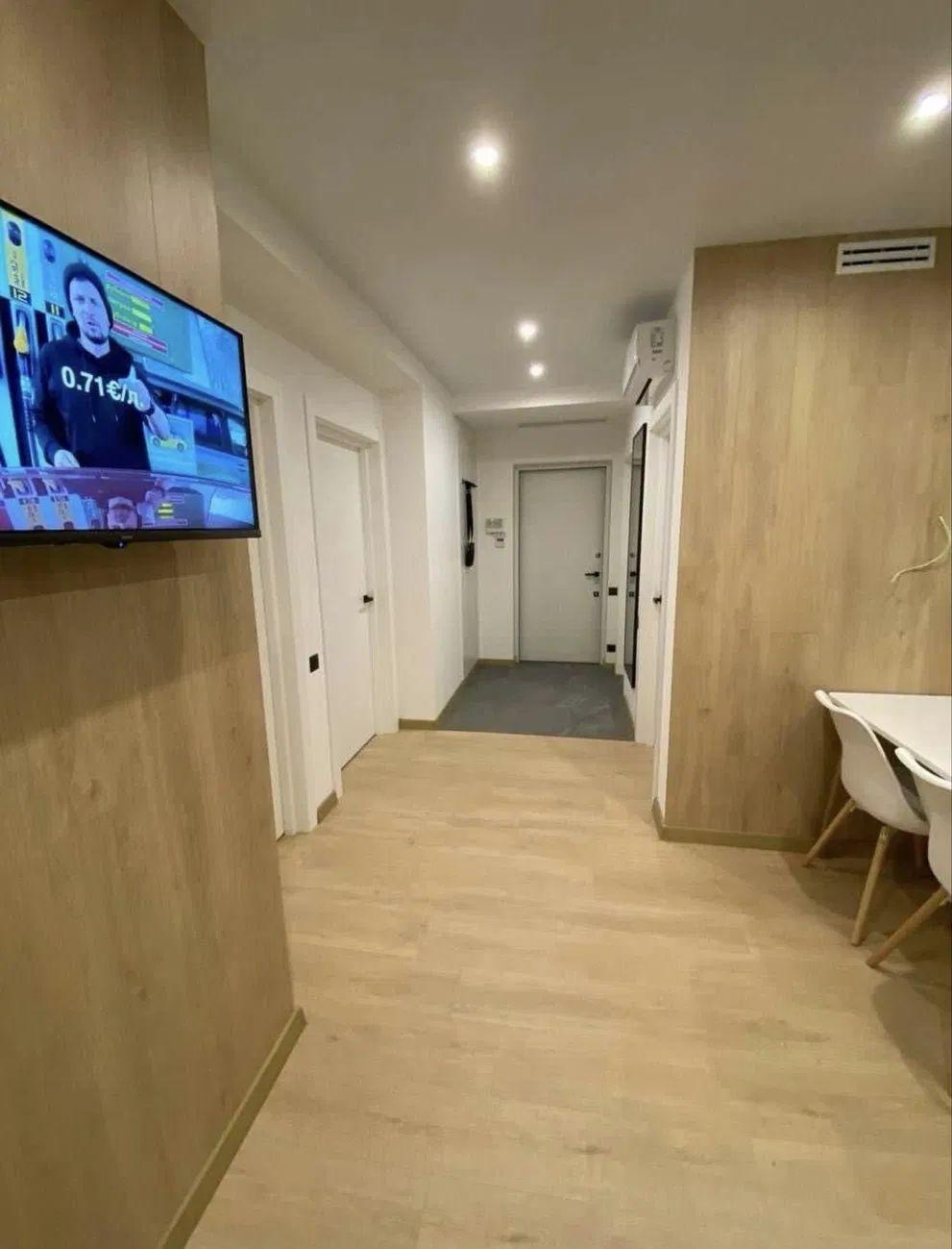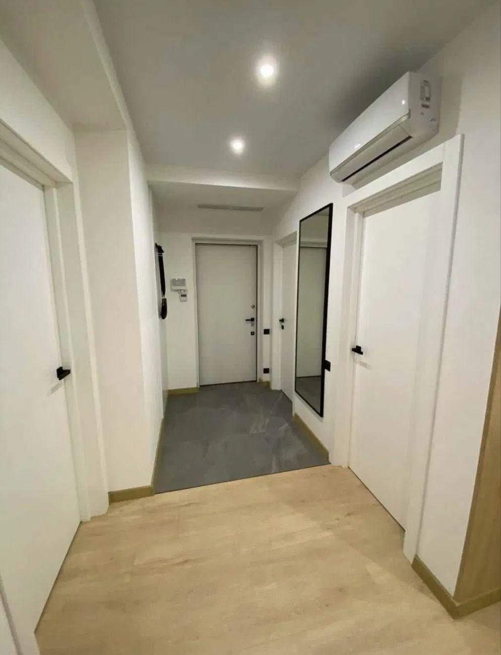 Квартира розташована на 8-му поверсі 12-поверхового будинку, повністю укомплектована сучасними меблями та вбудованою технікою світових брендів — повністю готова до проживання.