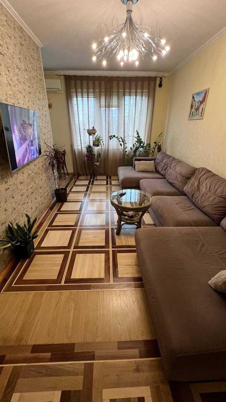 Продам светлую, теплую и уютную 3-х комнатную квартиру 65м2. Алексеевка, пр-т Победы ост. "Солнечная". Недалеко метро. Квартира на две стороны с восточным (2 комнаты) и западным (1 комната) расположением комнат. 5 этаж 9-этажного дома. Тихий уютный зелёный двор. Рядом садик, школа, школа искусств. Всё для комфортного проживания семьи с детьми. В квартире сделан капитальный ремонт, всё делали для себя с любовью. Пол - натуральный дубовый паркет, двери -массив дерева. Планировка: объединенная гостинная и кухня, отдельные спальня и детская, раздельные ванная и туалет, застекленные большая лоджия и балкон. Квартира продается с мебелью и техникой. Встроенная в кухню вытяжка Ardo, варочная панель (газ!) и электродуховка Zanussi, кондиционер Mitsubishi, холодильник Samsung, cтиральная машина Electrolux, бойлер на 80 л Gorenje В гостинной итальянский диван Chateau d'ax, телевизор Samsung, шкаф-купе. В спальной двухспальная кровать из натурального дерева и кресла из натурального ротанга, телевизор Philips. Встроенная гардеробная комната. В детской двухярусная кровать с полноразмерными (0,9*2м) двумя спальными местами. Два рабочих места. Шкафы. Спортивный уголок. Высокоскоростной wi-fi по всей квартире.