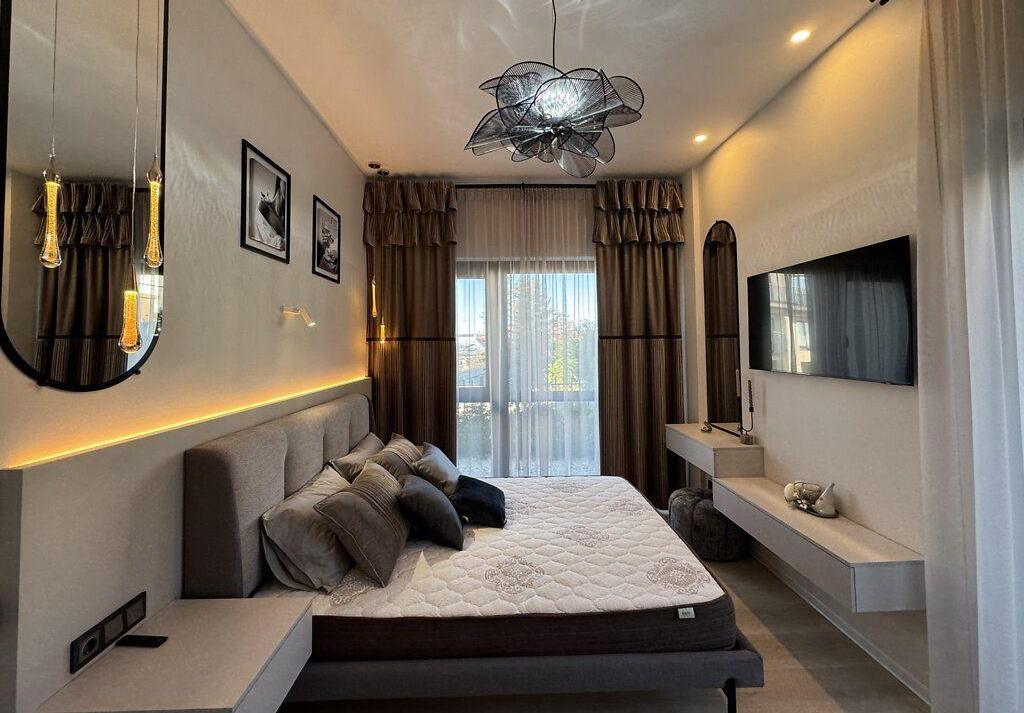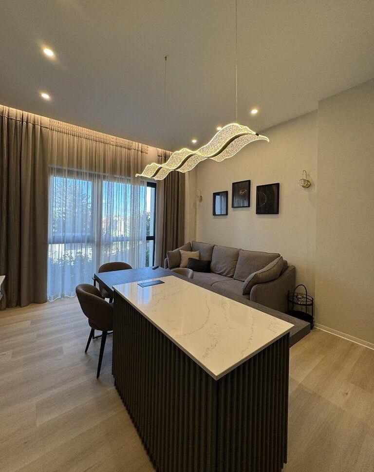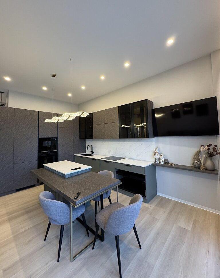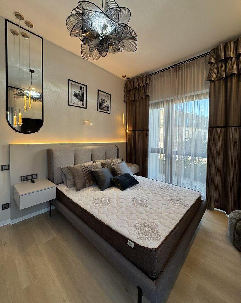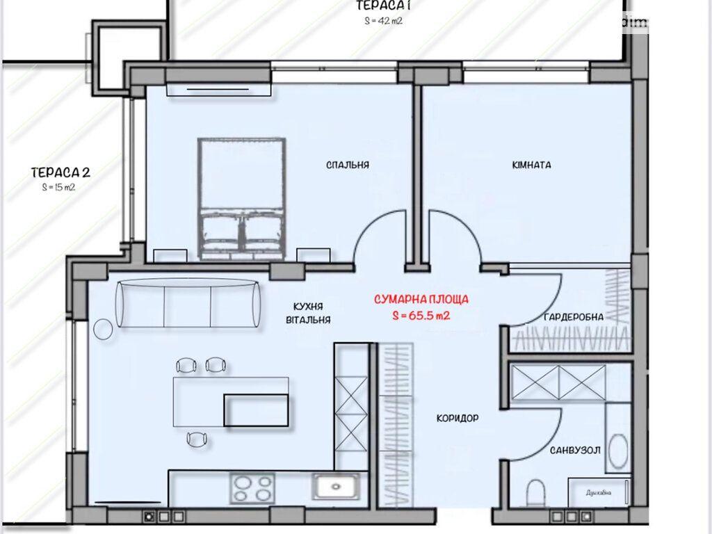 Продаж сучасної 2-кімнатної квартири з двома терасами та двома паркомісцями. Загальна площа квартири - 65, 5 м², висота стелі - 3, 10 м. Квартира повністю укомплектована якісними меблями та технікою. Виконаний ремонт із використанням преміальних матеріалів. Планування: кухня-вітальня; головна спальня з виходом на терасу 42 м²; друга кімната-спальня або кабінет (під власні потреби); гардеробна кімната, повністю облаштована; санвузол з преміальною сантехнікою, вбудованими меблями, пральною машиною та бойлером; коридор з великою шафою зі скляними перегородками. Кухня: Індивідуальне виготовлення Maestro Kitchen. Матеріали: кварцова стільниця та фартух, фасади шпон + МДФ. Вбудована техніка Bosch: холодильник, посудомийна машина, варильна поверхня, духовка, мікрохвильова піч, витяжка. Кухонний острів зі столом і стільцями виконаний у єдиному стилі. Вітальня: диван; телевізор Samsung; штори та тюлі; острівна зона зі стільцями. Спальня: двоспальне ліжко; тумби, туалетний столик, тумба під ТВ; телевізор Samsung; вихід на терасу 42 м². Гардеробна: Окрема кімната, повністю обладнана системами зберігання. Санвузол: преміальна сантехніка; пральна машина; бойлер; вбудовані меблі. Додаткові деталі: преміальне освітлення по всій квартирі; якісний текстиль та декоративні елементи; усі меблі виготовлені під замовлення. Тераси: Тераса 42 м² велика зона відпочинку з перголою, садовими меблями та ландшафтним дизайном; Тераса 15 м² додаткова приватна зона з озелененням. Паркомісця: У вартість входять два паркомісця. Квартира не потребує жодних додаткових вкладень. Продумане планування, висока якість матеріалів і стильний дизайн роблять цей обєкт готовим до комфортного проживання з першого дня.