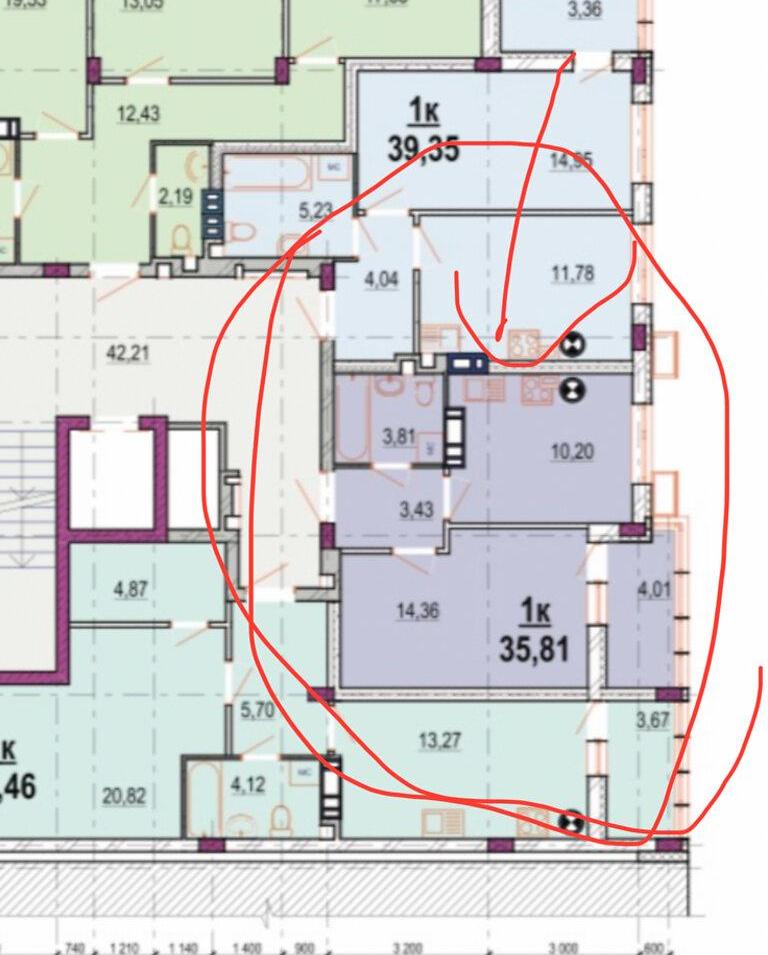 Площа 36 м², кухня 10 м².