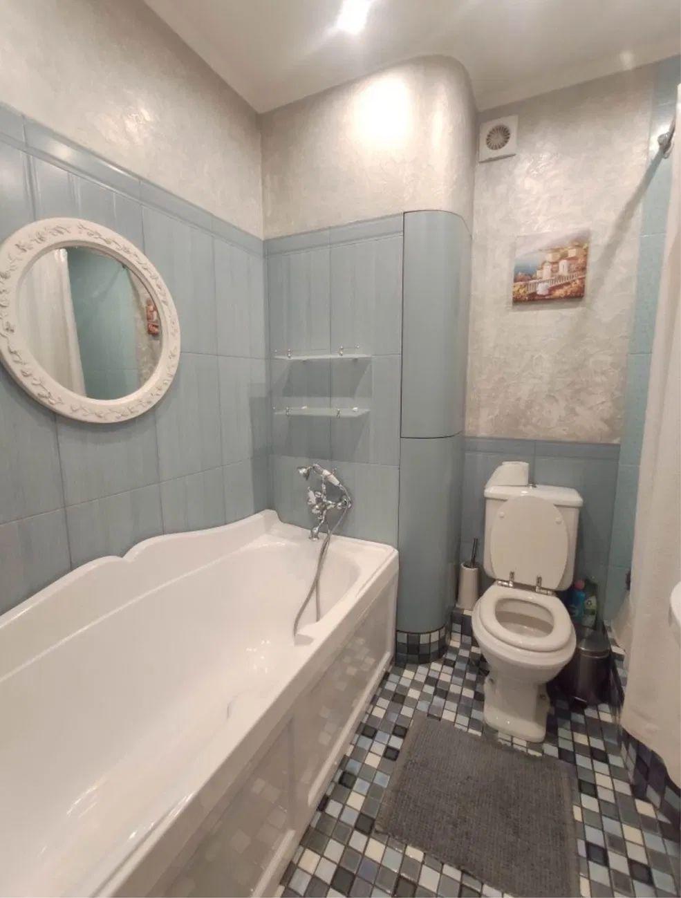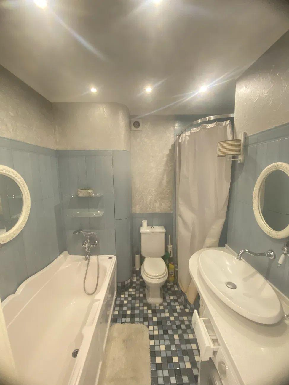 Простора ванна кімната: велика ванна та душова кабіна, функціональне планування, велике дзеркало.