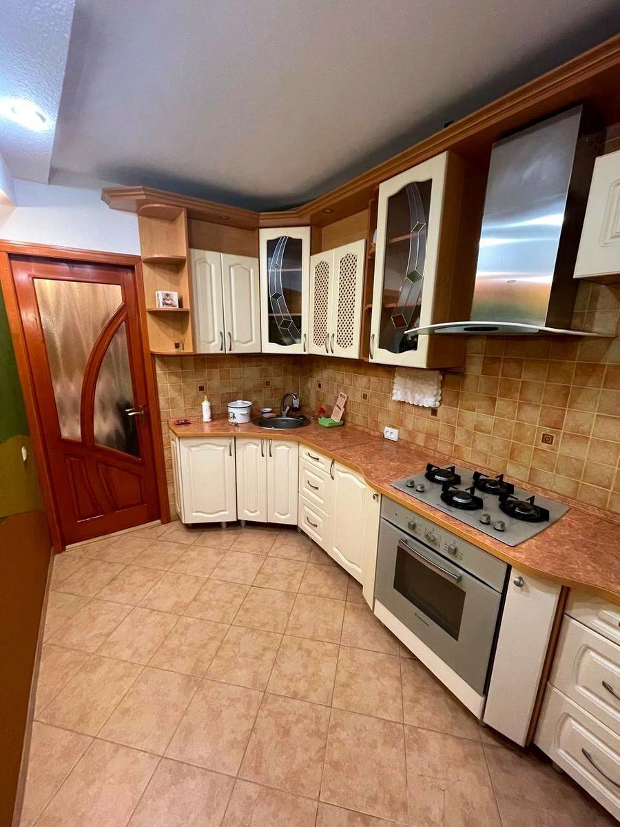 Вмонтована кухня в прекрасному стані, газова плита, духова шафа, холодильник залишиться по домовленості.
