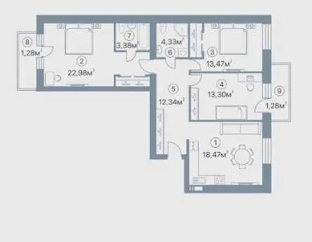 - Площа кухні, м²: 18.47