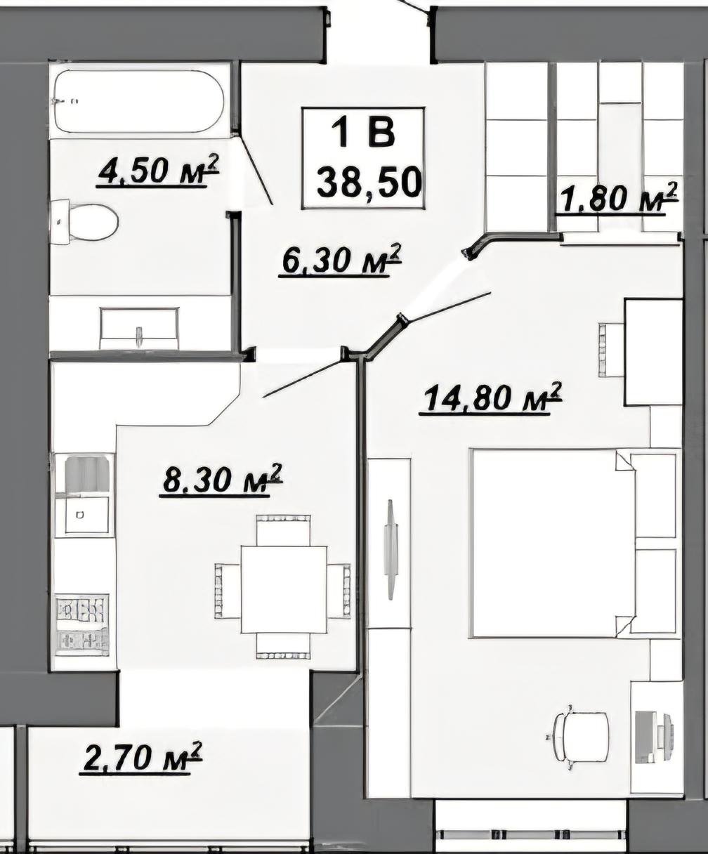 Пропонується 1-кімнатна квартира в новому житловому комплексі "Княгинин". Площа квартири 39 м², без оздоблювальних робіт.