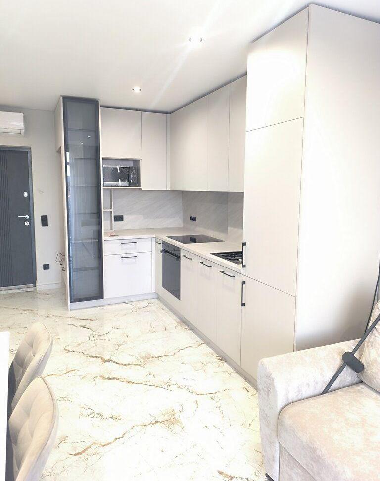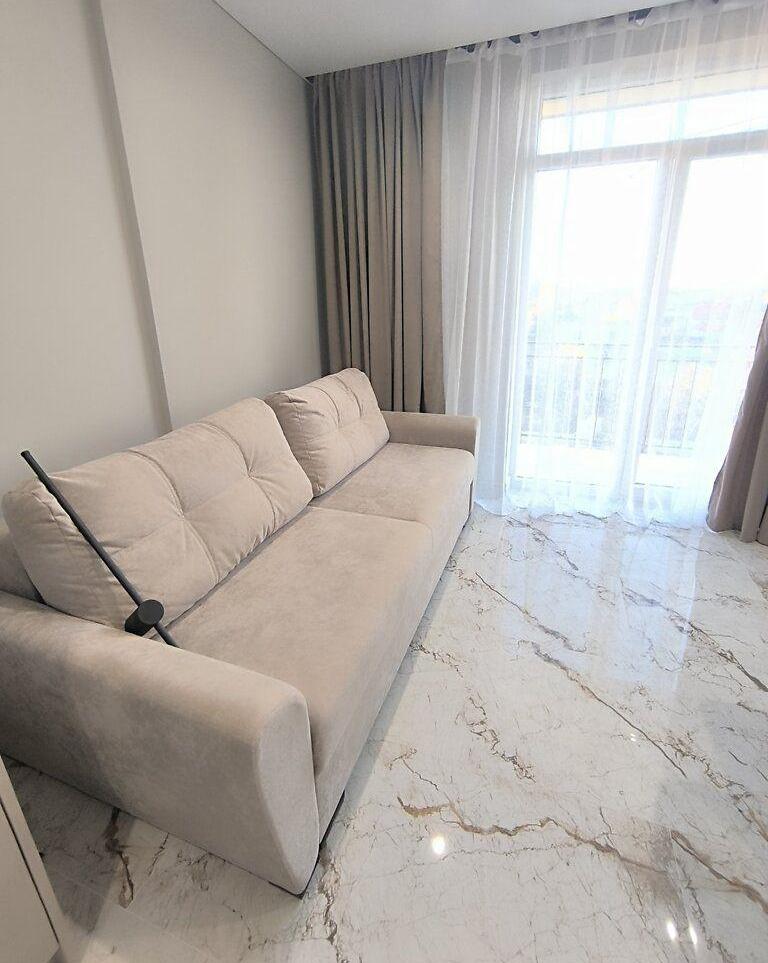 На набережній по вул.Василя Гаджеги(Радіщева) в новобудові продається простора 1-кімнатна квартира на 6-му поверсі 9-ти поверхівки. В квартирі зроблено ремонт з використанням високоякісних матеріалів, зроблено частково меблювання у спальні та ванній. Кухня-студія на стадії встановлення меблів. По всій квартирі є тепла електрична підлога, встановлено бойлер, буде кондиціонер. Будинок побудовано з цегли+утеплення пінопластом, що робить його енергоефективним. Також встановлено електричну зарядку для електрокарів, є дитячий майданчик. Поряд є річка, боздошський парк де знаходиться б'вет з мінеральною водою. Василия Гаджеги (Радищева) улица, 7Д