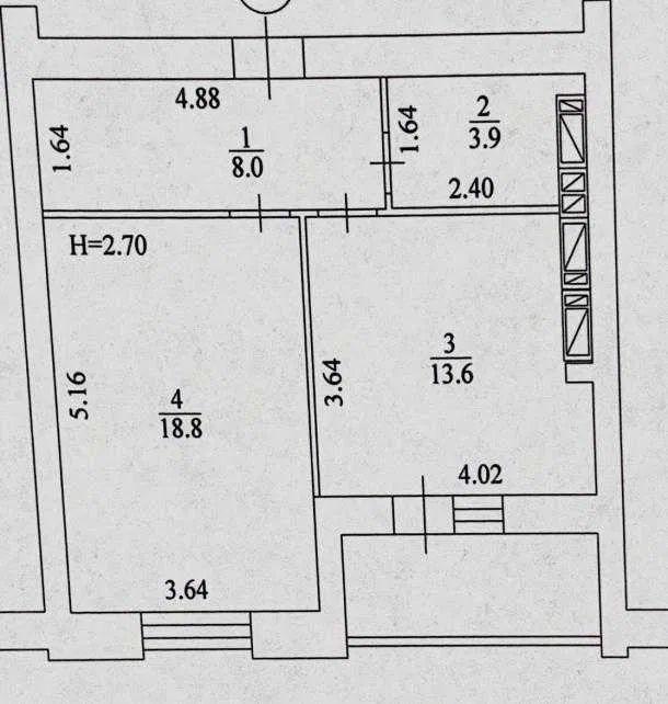 Цегляний будинок, поверх – 6/16, заг. площа – 48 м²., кухня – 20 м².