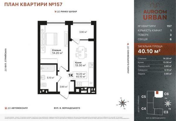 Продається 1-кімнатна квартира у новобудові у Сихові, по вулиці Вернадського, площею 40,10 м².