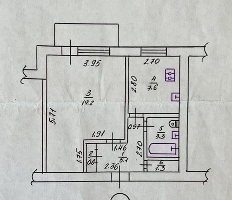 Цегляний будинок, поверх – 5/9, не кутова, заг. площа – 38,1 м²., житлова – 19,2 м²., кухня – 7,6 м².