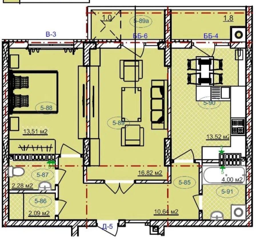 - Площа кухні, м²: 13.52