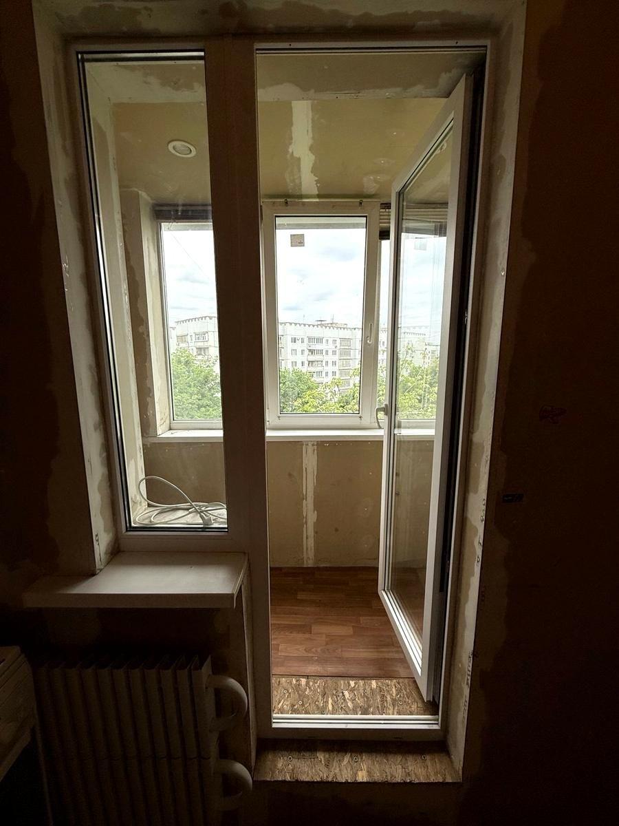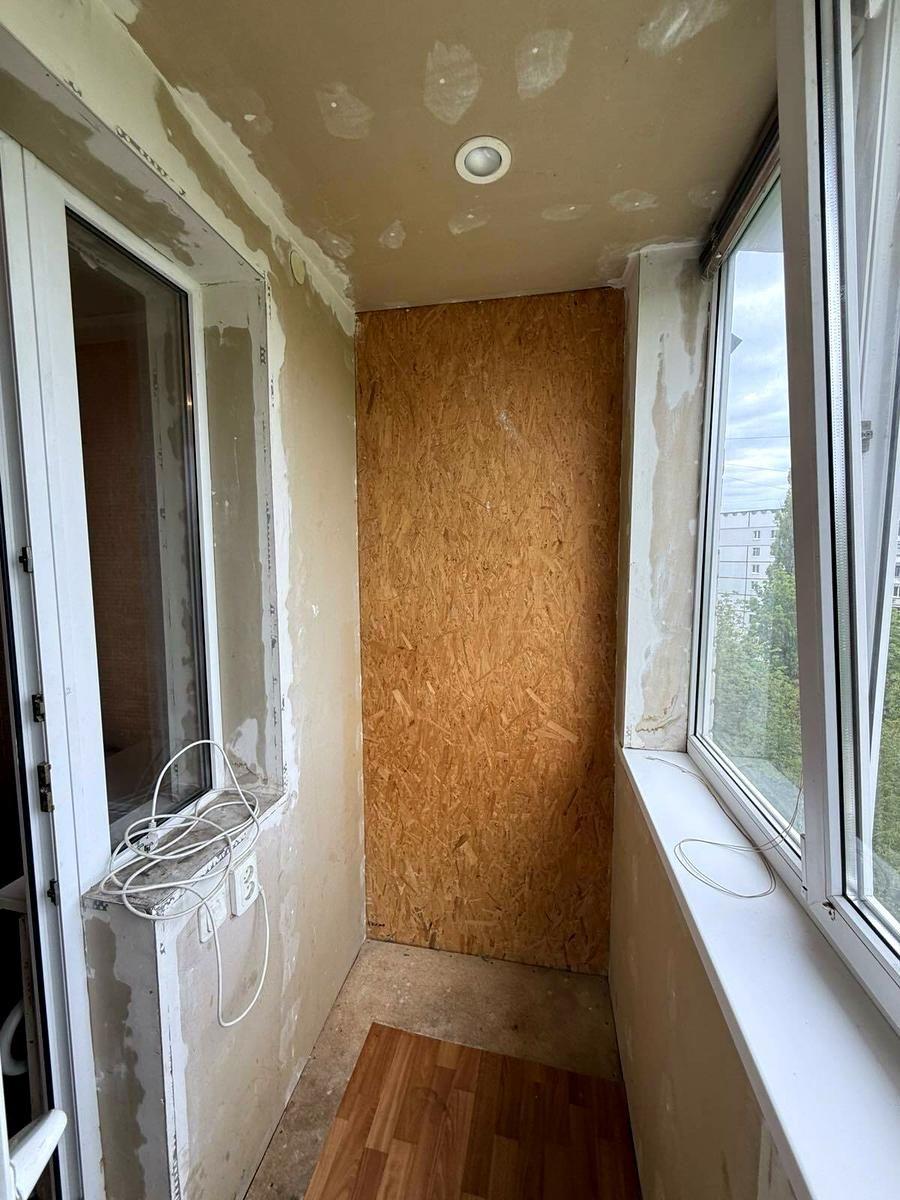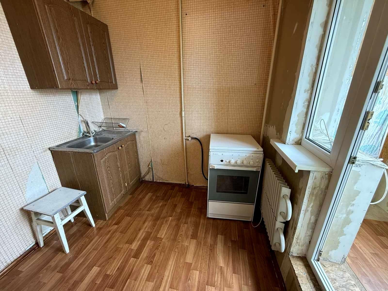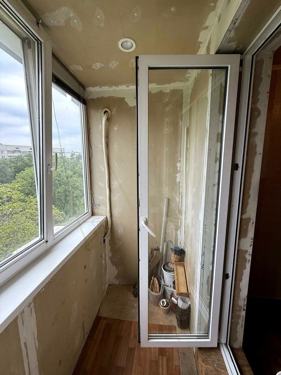 У квартирі частково виконано ремонт: - вирівняні стіни в кімнаті та стелі, -всі вікна нові пластикові, -на підлозі лінолеум - збільшена кімната за рахунок лоджії -всі батареї замінені на нові - на балконі зроблено світло та розетки -с/в підготовлений під ремонт, усі труби та стояк нові!