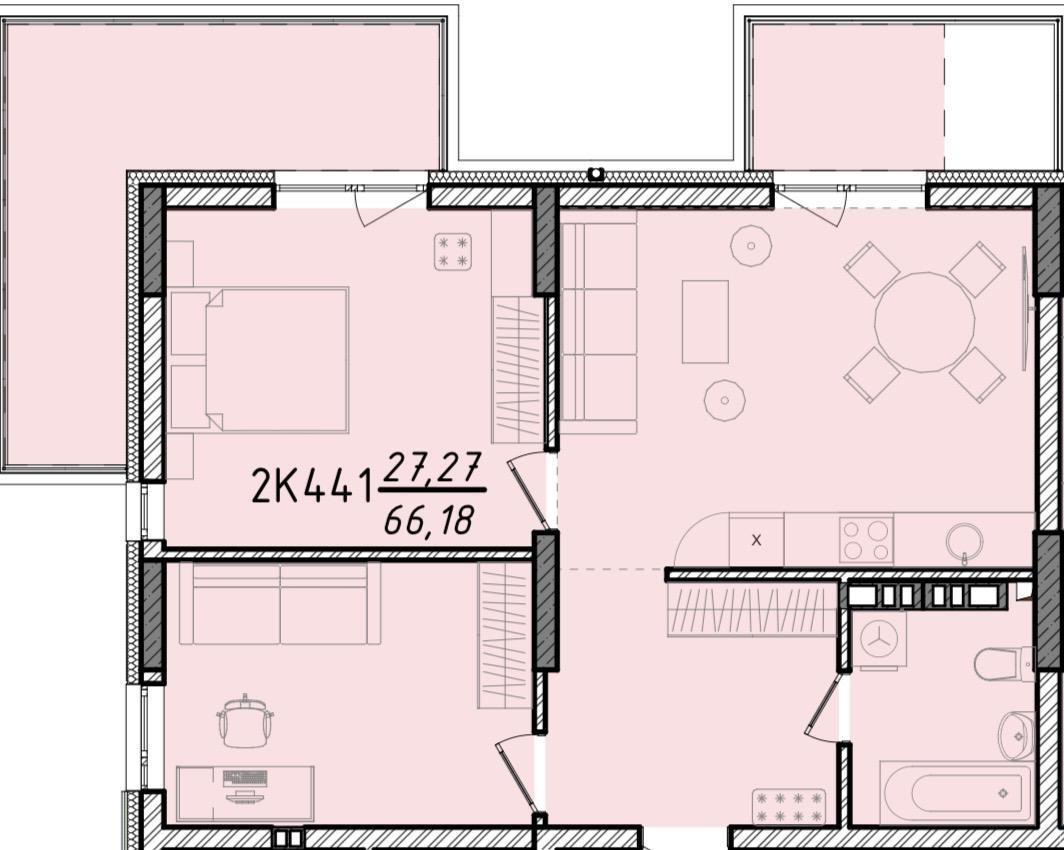 - Кількість кімнат: 2 кімн.