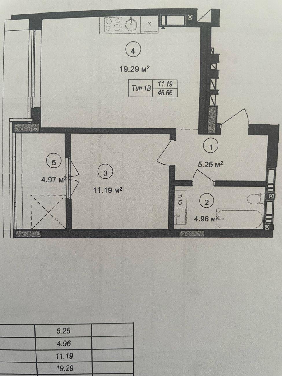 - Площа загальна, м²: 45.66