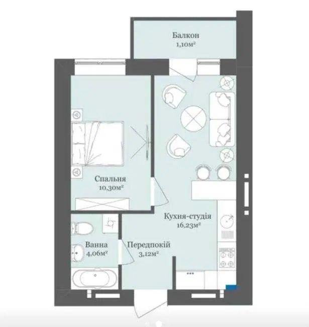 1 кімн. · 6/9 пов. · 34.81 м²