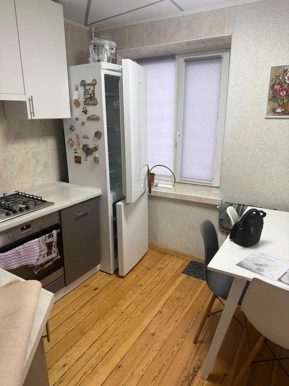 Цегляний будинок, поверх – 7/9, заг. площа – 43,6 м²., житлова – 26 м²., кухня – 7 м²., окремі кімнати, засклений балкон.