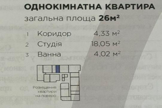 - Площа загальна, м²: 26