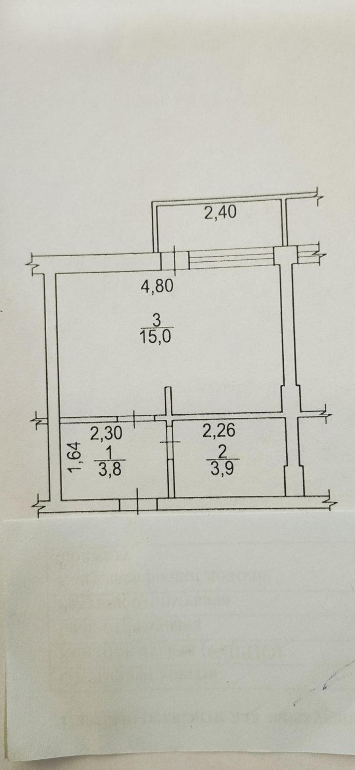 Продаю 1 квартиру 25.3кв.м на 3-му поверсі та складається з 1-ї кімнаті житловою площею 15кв.м ; санвузла - 3.9 кВ.м; коридору площею -3.8 кВ.м; балкон площею 2.4кв.м суміщений з кімнатою, що збільшує кімнату. Зроблений увесь ремонт, є підвод під бойлер та ванну. Є лічильники на воду, електрику та лічильник на тепло. Кімнату може бути обладнана як офіс, манікюрний або масажний салон. Квартира була обладнана під офіс, тому можу залишити усю мебель. Через дорогу базар та магазин "Клас" , поруч садочок та школа.є місце для паркування авто біля дому.