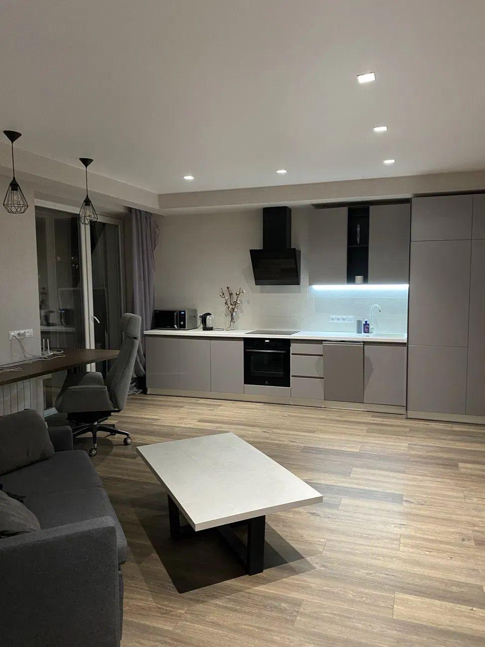 Формат квартири: кухня-студія та окрема спальня (спальня без вікна, зроблена примусова вентиляція), великий панорамний балкон. Світла, тепла, маленькі КП.